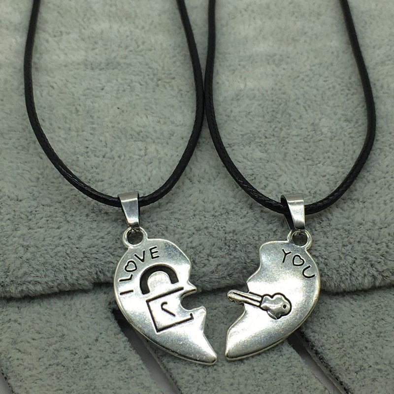 2 PCs/Set Couple Necklace for Women and Men Silver Two Pieces Heart Pendant Paired Necklace Fashion Necklace Gifts for Women