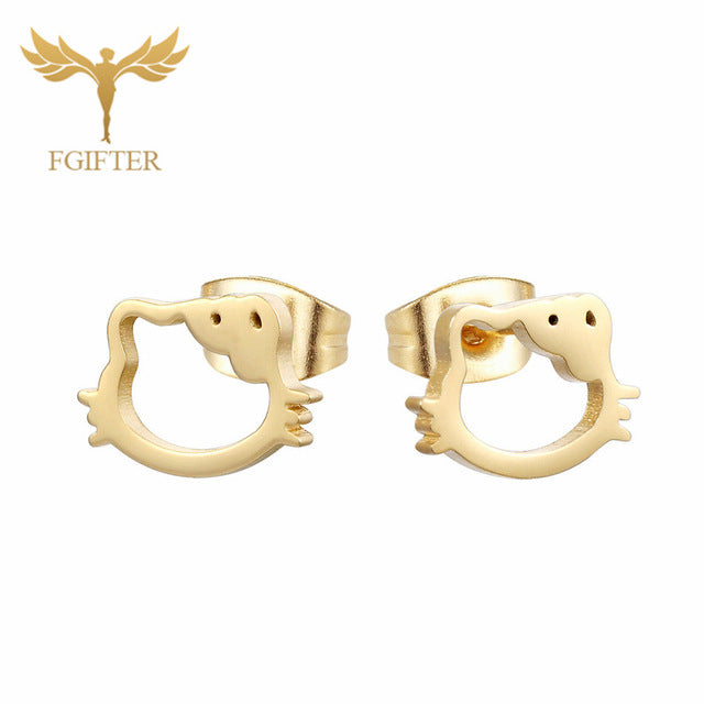 FGifter Hiphop Rock Jesus Stud Earrings Gold Silver Color Small Earring Women Men's Stainless Steel Ear Piercing Jewelry